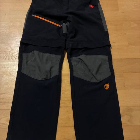 Out-door bukser/vandrebukser fra Reima. 2i1. Ben kan lynes af og gøres om til shorts. Kan justeres i taljen. Sælges billigt pga synlig brugsspor (nusset i stoffet nogen steder) ellers fin og intakt.