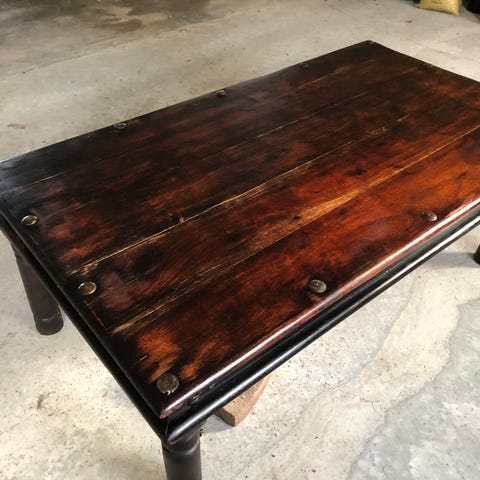 Rustikt sofabord fremstillet med genbrugstræ