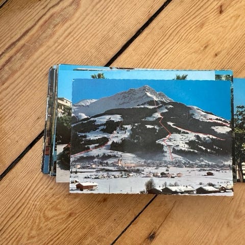 Samling af vintage postkort med forskellige motiver, herunder portrætter, landskaber, bybilleder og kunstneriske illustrationer. Postkortene varierer i størrelse og er i brugt stand. Velegnet til samlere eller til brug i kreative projekter. Man skal selv hente