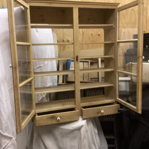 2 gamle, sjældne og lækre vitrineskabe med skydelåger sælges.