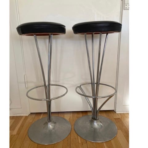 Piet Hein & Bruno Mathsson barstole af stål og anilin læder