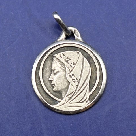 Relativ sjælden antik / vintage fransk vedhæng / medaljon i sølv med Madonnaen / Jomfru Maria