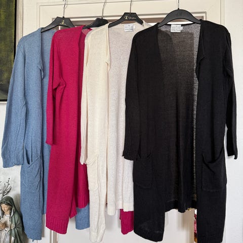 Jeg har mange forskellige dekorations- og brugsting, sko, støvler, smykker og størrelser tøj til salg – lige fra XS til XL.
