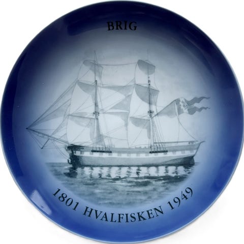 Bing & Grøndahl udgave gennem en årrække en række fine blå platter med danske skibe gennem tiderne - kaldet Skibsplatterne.