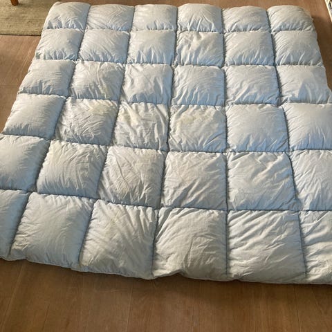 Dejlig dyne fra Ringsted dun med gåsedun. Super dejlig med kassetter. Vægt 2,4 kg. Måler 135 x 200 cm. Kan vaskes i maskine ved 60 grader. Rigtig fin stand.