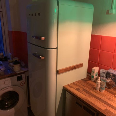 Vi har dette lækre Smeg køleskab, som vi desværre ikke, kan få plads til i vores nye køkken alligevel. Det har stået i vores viktualierum, som køle/fryseskab nr 2,ind til vores renovering af køkken var færdigt, så det er mest blevet brugt til drikkevarer, det er knap 2 år gammelt. Vi håber det kan finde en ny ejer der har bedre plads til det end os 😃