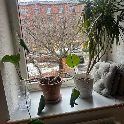 Selve blomsten og krukken er ca. 88 cm høj og ca. 100 cm bred, så den fylder en del.