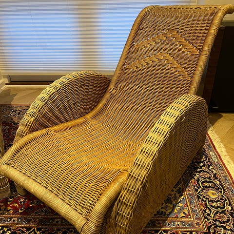 I vældig pæn stand er denne Paris chaiselong-agtige lænestol designet af Arne Jacobsen. Den skal afhentes i Davinde lidt uden for Odense.