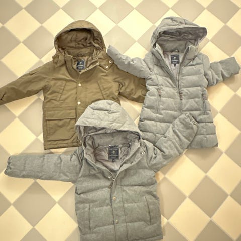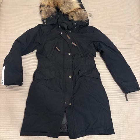 Modellen hedder Mountain pigefrakke. Kan bæres på ryggen som en taske, hvis det bliver for varmt. Og så har den et tracking system som vi aldrig har brugt..