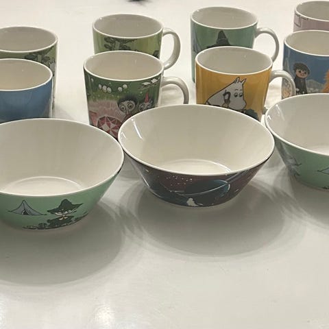 Arabia Mumi koplåg i hvid plastik med udskåret mumi-figur. Låget er designet til at passe på kopper eller som låg til opbevaring. Materialet er plastik, og låget har et dekorativt motiv fra Mumii-serien.