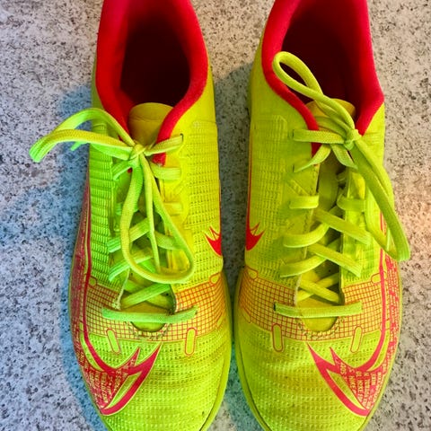 Nike Mercurial indendørs fodboldsko i sort farve. Skoene er designet til indendørs brug med en slidstærk gummisål for godt greb på glatte overflader. Skoene er størrelse 42,5 og egner sig til både træning og kampe på indendørs baner.