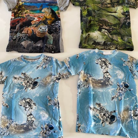 Nye Molo t-shirts str. 10 år (grøn) og 12 år (drager) sælges. Prisen er Per styk.