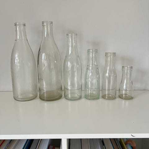 Vintage Glasflasker Sæt 5 stk. Klar og Brun Glas