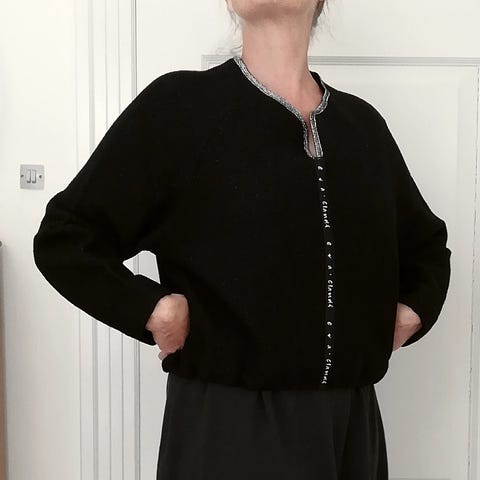 Smuk mørk grøn/ sortnistret trøje fra Eva og Claudi. Brugt een gang , er som ny.