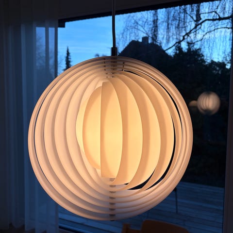 Smuk og skulpturel pendel fra Verpan, designet af Verner Panton. Pendlens design minder om en klokke, hvilket giver pendlen et yderst charmerende og organisk udtryk. Lampens brede afrunding sørger for at lyset bliver optimalt fordelt, hvorfor denne er perfekt til de steder hvor du har brug for godt lys i hjemmet. Brug Pantop pendlen ved sofahjørnet i stuen, på kontoret eller hvor end du påtænker at denne vil passe ind hjemme hos dig.