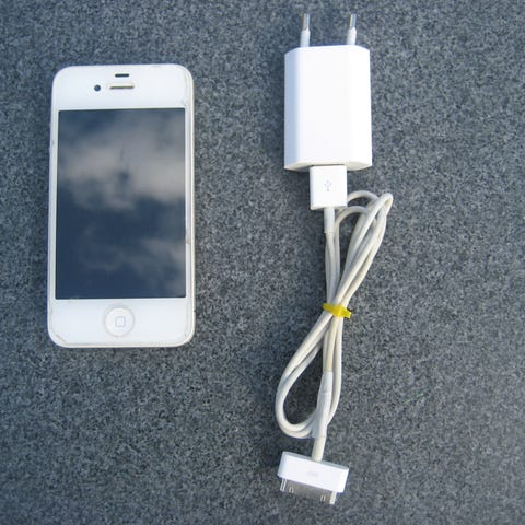 Original ladestander fra Apple medfølger, men ingen kabler.