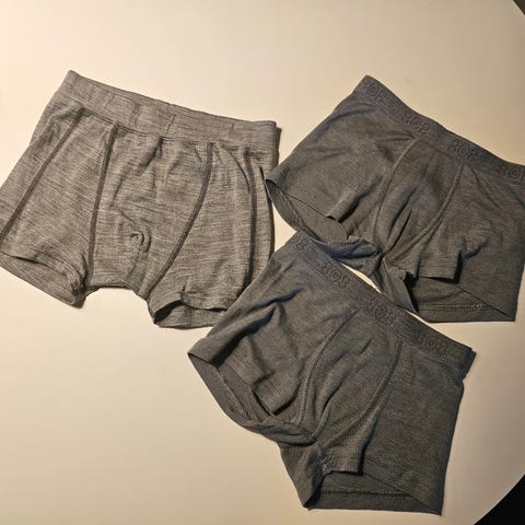 Rigtig fine boksershorts som også vil kunne bruges som almindelige shorts, da der ingen "undertøjsagtige" syninger er - de ligner shorts og er løse i benene ligesom shorts, de sidder ikke tæt ligesom andre boksershorts. Ikke brugt meget. De er store i str. og kan sagtens bruges i str. 134-140 også.