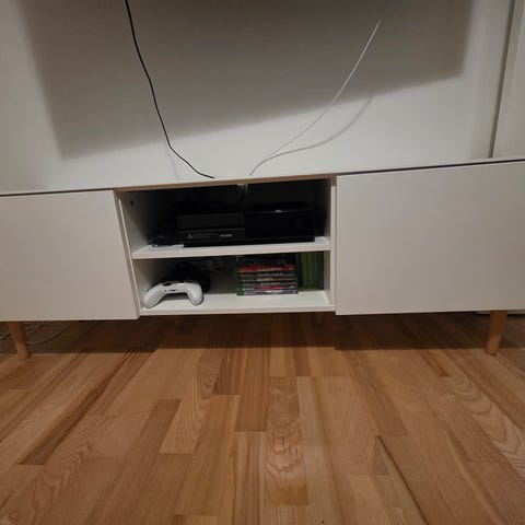 Ingen brugsspor, og under et år gammelt. Kan bruges som TV bord og skænk.