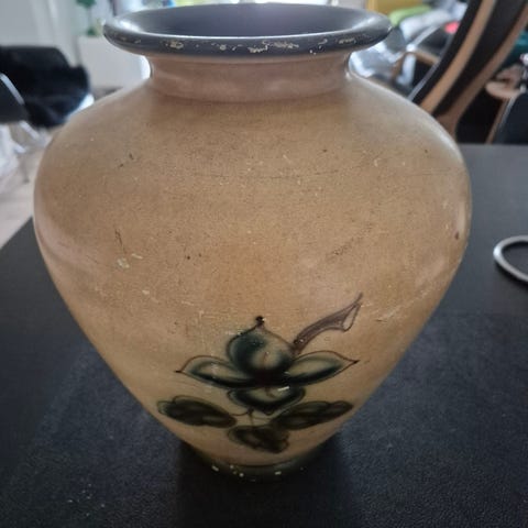 Keramik vase retro , Günther Praschak, Flot flaske-vase fra Knabstrup. Den har et lille afslag på mundingen af halsen (se foto).