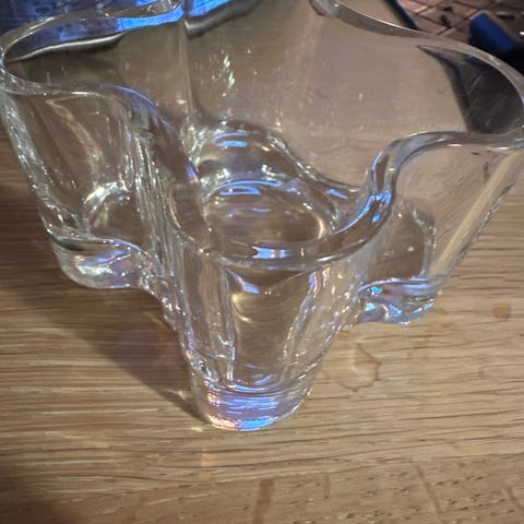Iittala Aalto skål i blå glas. Skålen har en organisk, bølget form og er lavet af farvet glas. Velegnet til dekoration eller opbevaring af små genstande.