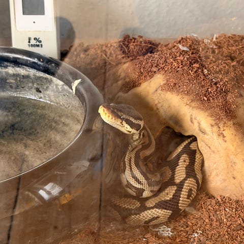 Terrariet hun er i kan købes med samt indhold hvis dette ønskes.