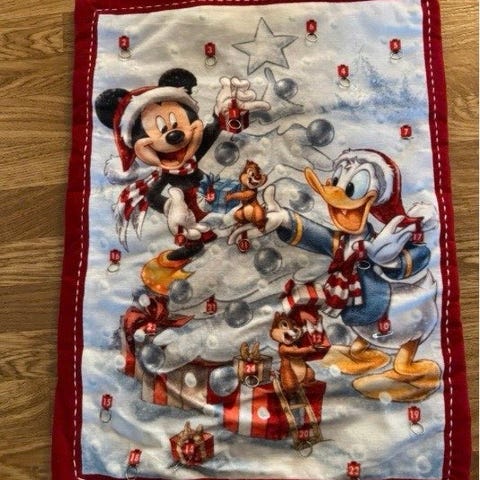 Super sød julenkalender fra Disney Jul Firkløver. Den er helt ny og har aldrig været brugt kun ligget i skabet. Den måler ca. 73x51 cm. Den har mange fine små detaljer med Mickey Mouse, Anders And, chip og Chap, der pynter juletræ. Selve ophænget er også lavet som Mickey hoved. Den kan sendes eller afhentes på adressen. Porto mellem 45-55 kr og sender med PostNord med track and trace, da jeg har god erfaring med dem.