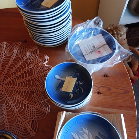 4 hvide platter, bing og grøndal, fine til væggen, fra dyre- og røgfrit hjem, sælges samlet