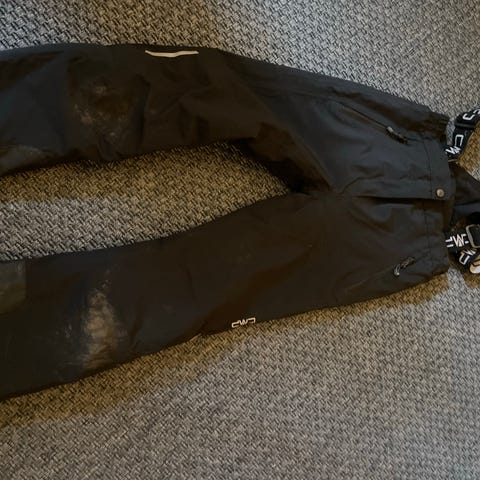 Skibukser Med justerbare seler og gummirem v anklerne. Kan også justeres i livet. I fin stand bortset fra lille revne på ca. 2 cm, som kan lappes med rette materiale, se billede