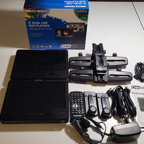 Læs om dem via link hos Elgiganten (hvor de er købt) . I rigtig fin stand. Men alt tilbehør. https://www.elgiganten.dk/product/tv-lyd-smart-home/tv-tilbehor/tv-tilbehor/blu-ray-dvd-afspillere/nextbase-9-barbar-dvd-afspiller-car-9-dual/NBCAR9D