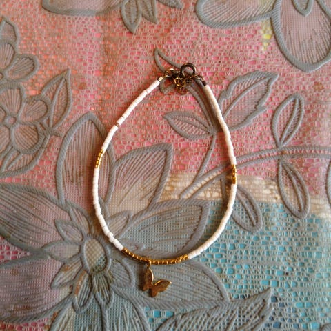 Sommerfugle armbåndet er ren bijouteri og ligeledes nikkelfrit.