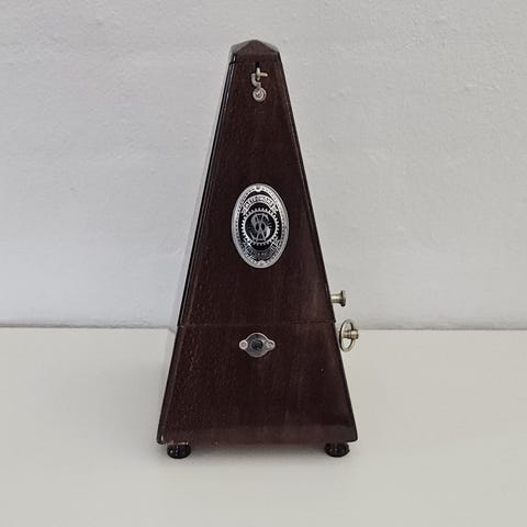 Denne Metronome har været brugt til adskillige optagelser i Povl Kjøller’s hjemmestudie. Den virker, men skal have et nyt stik til 9-volts batteriet.