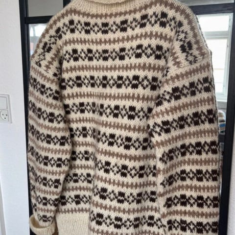 str.S -Ubrugt færøsk uldsweater. Håndskrikket af 100% færøsk uld. Mønster: Nost.