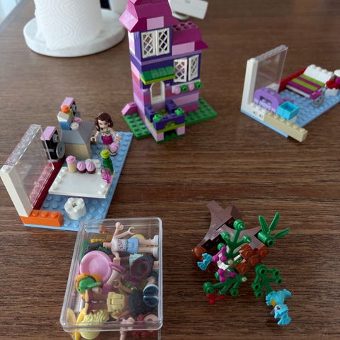 7 sæt LEGO Friends med diverse figurer og tilbehør