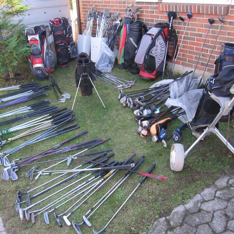 400 kr. for alle, Wilson driver, hybrider 20° 21° 24°, chip-jern, Beast putter.