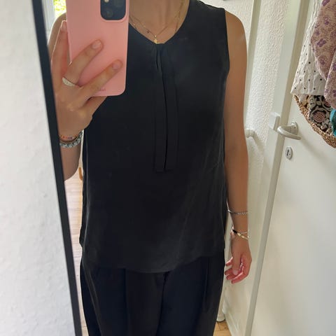 Super fint top/bluse i sort med hulmønster. Står som ny - købt i udlandet og kun brugt en gang eller to.