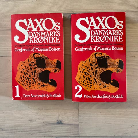 Her sælges DANMARKSKRØNIKEN komplet i 2 bind. Genfortalt i et let tilgængeligt dansk af Helle Stangerup.