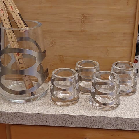 Der medfølger én glasvase i æsken sammen med læderremmen. Passer til almindelige lys.