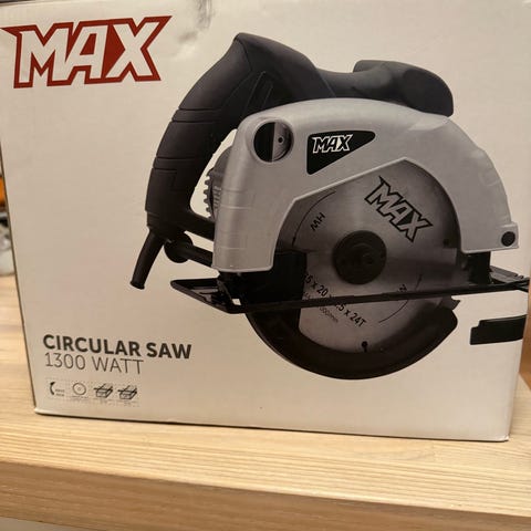 MAX Cirkelsav med en effekt på 1500 watt. Designet til at skære i forskellige materialer med præcision. Udstyret med et rundt savklinge og et håndtag for bedre kontrol under brug.
