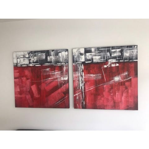 Sæt bestående af 3 abstrakte malerier med moderne kunstmotiver. Malerierne har en farverig palet med nuancer af brun, rød, sort og beige. Perfekt til vægdekoration i stuer eller kontorer.