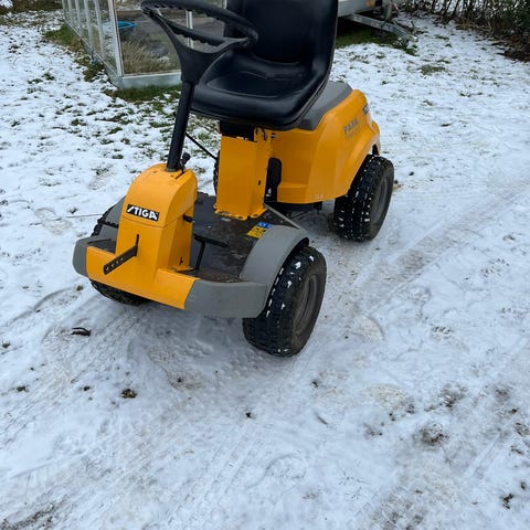 Stiga Park Comfort rider, baghjulstrukket og med Stiga Combi Pro 110 klippebord. Maskinen er fra 2008, og timetælleren står på 7648 timer. Motoren er en 15,5 HK OHV-motor. Motoren kører fint, men maskinens hydrostat-gear skal renoveres, da den mister trækkraften, når den bliver varm. Den venstre forskærm er beskadiget. En god men også godt brugt havetraktor, som trænger til en omgang.