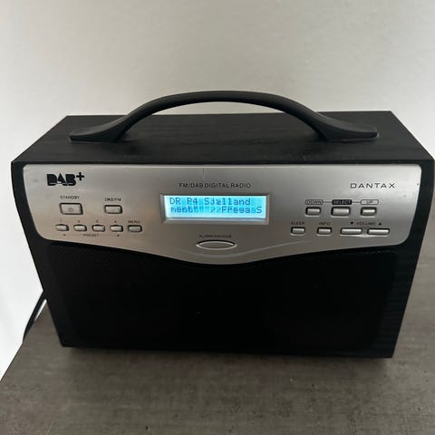 Denver DAB+ FM Radio i sort med digital og FM radiofunktion inkl strømforsyning og brugsanvisning.