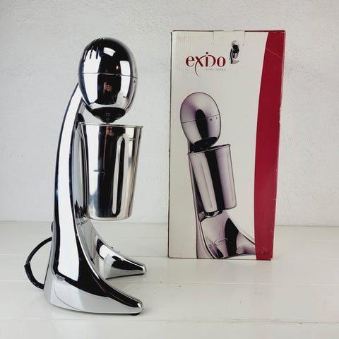 Expo Elektrisk Cocktail Mixer i rustfrit stål. Designet til effektiv blanding af drikkevarer med en indbygget motor og medfølgende blandebæger. Egnet til hjemmebrug eller mindre barer. Kan også piske flødeskum.