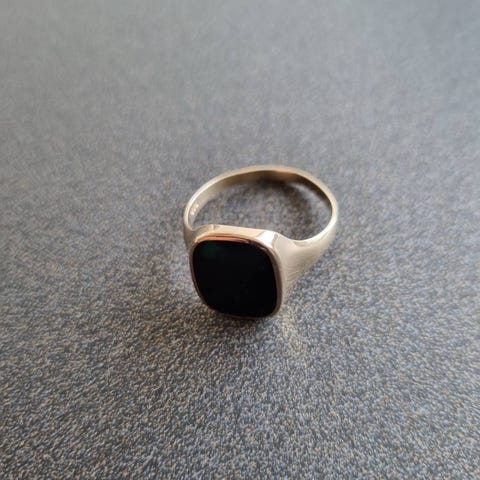 Flot 14 karat herrering / signetring med sort onyx eller også til damer?