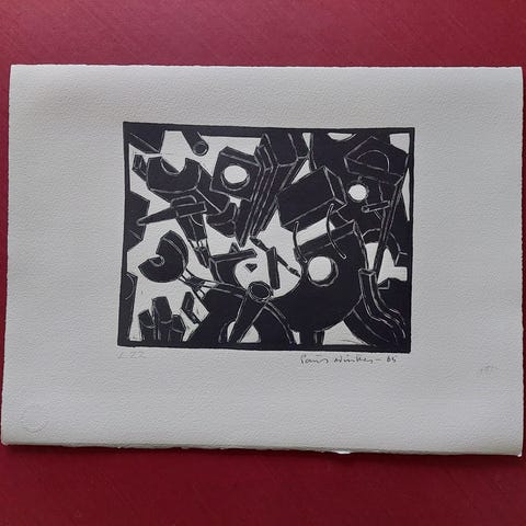 Nummer 96 af en suite på 104 linoleumssnit lavet af kunstneren på blot en måned- tilmed nogle af de sidste linoleumssnit han lavede
