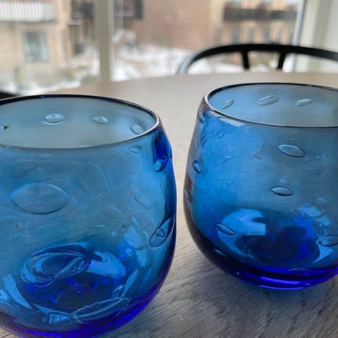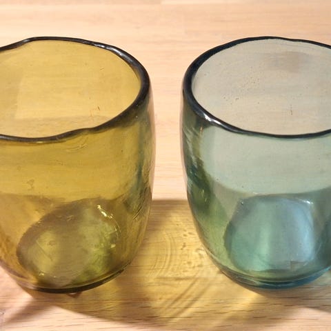 Glas, Fyrfads Glas/ mundblæste, ?, Meget smukke unika mundblæste glas til stor fyrfadslys.