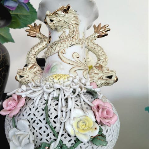 Kinesisk firkantet Porcelæn Vase med Blomster Dekoration