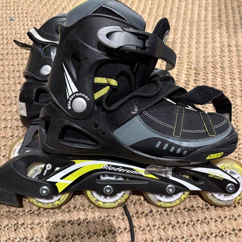 Fine rulleskøjter som kan justeres i størrelsen fra 32-35 , som vi har været rigtig glad for. De er brugte, men i fin stand :-)