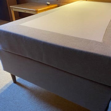 Blæk plet på topmadras, som vist på billede. Sengen har stålben.