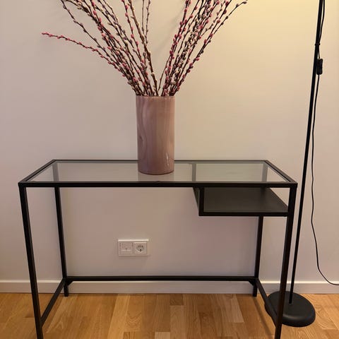 Skrivebord med lille hylde under bordplade. Vittsjo