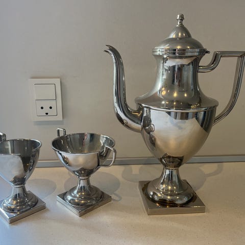 Meget smukt sølvplet fløde kande, aldrig brugt.
